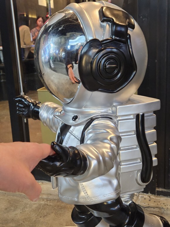 들어가면서 입구 문지기인 이 우주인과 악수 해줍니다.