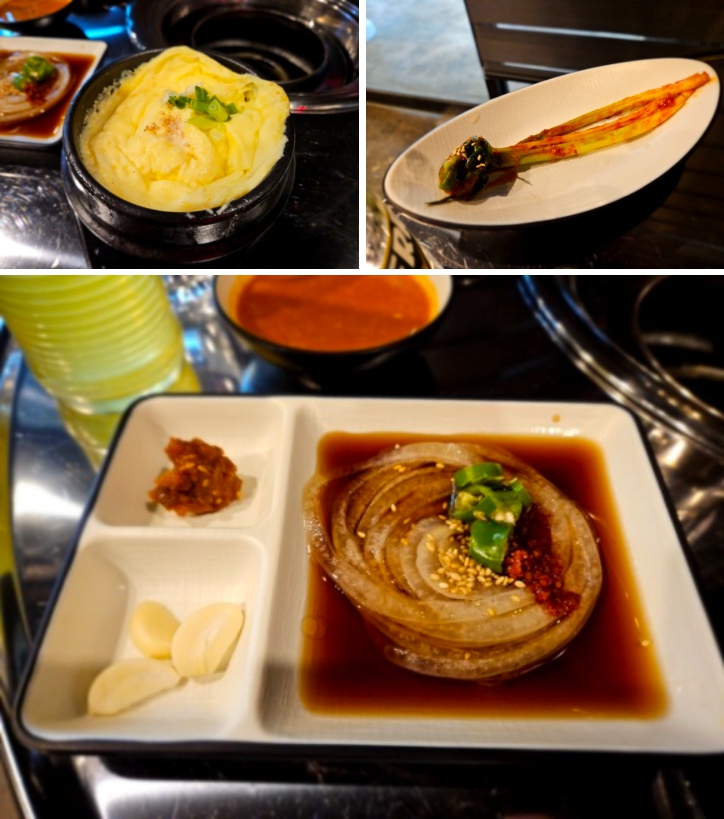 계란찜, 직접 재배한다는 파김치. 개인당 하나씩주는 소스.