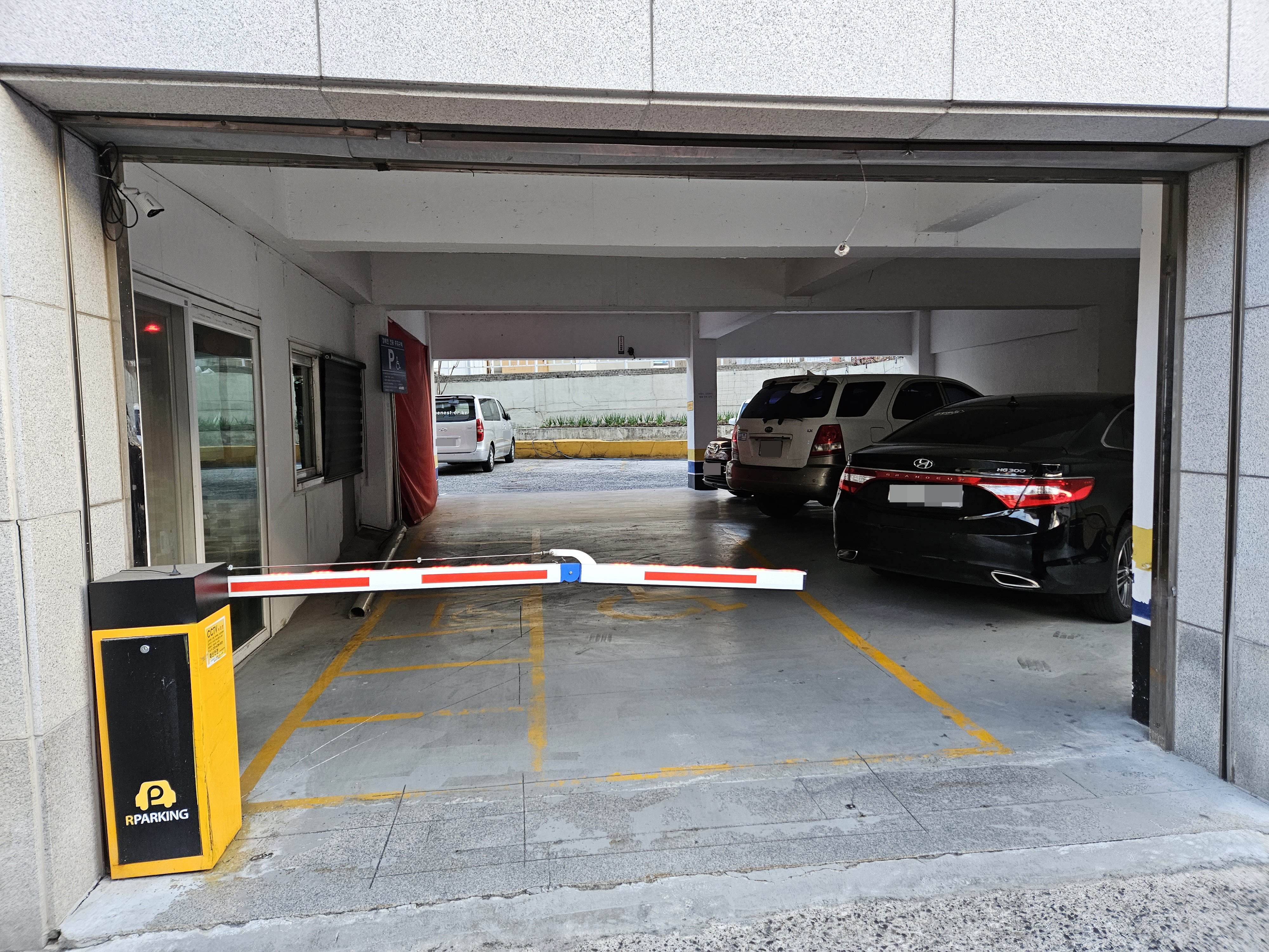 건물 안쪽에 7대를 세울 수 있습니다.