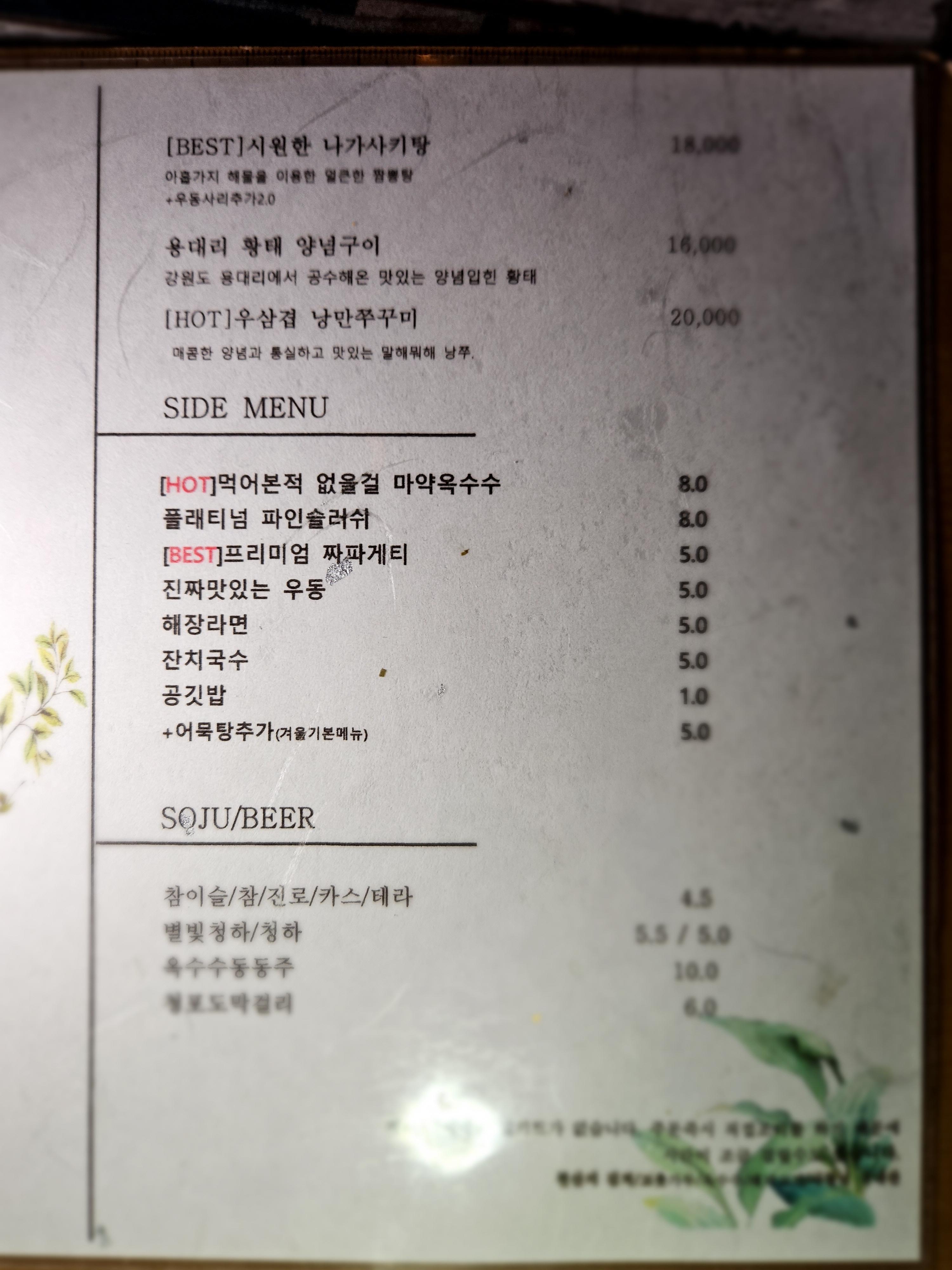 결국 차를 갖고 왔는데도 불구하고 맥주 한 병을 시킵니다.