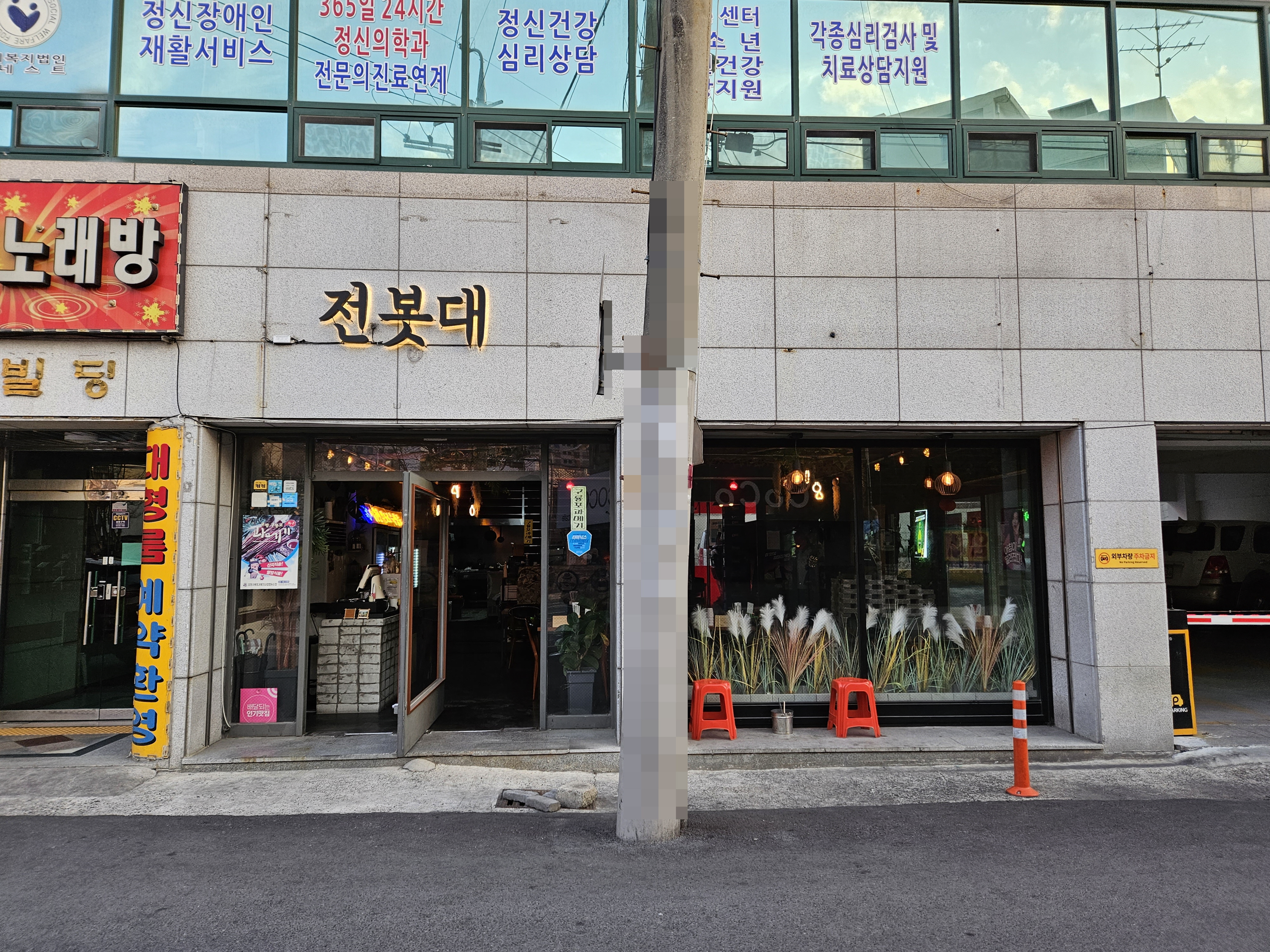 전봇대포차 앞에 있는 전봇대가 제 눈에 들지 않습니다.